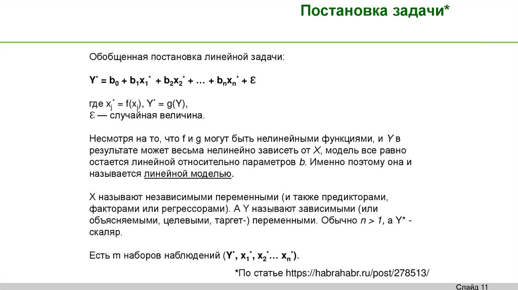 объясняемыми, целевыми, таргет-) переменными. Обычно n > 1, а Y* скаляр.