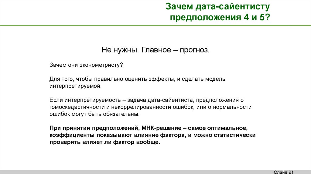 4. Коэффициенты легко интепретируются и показывают влияние на таргет именно