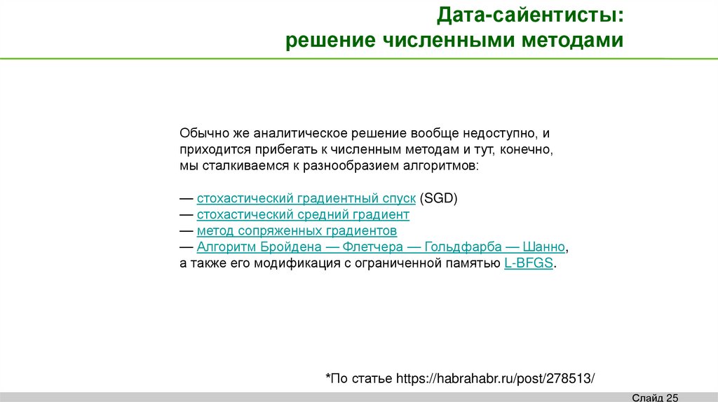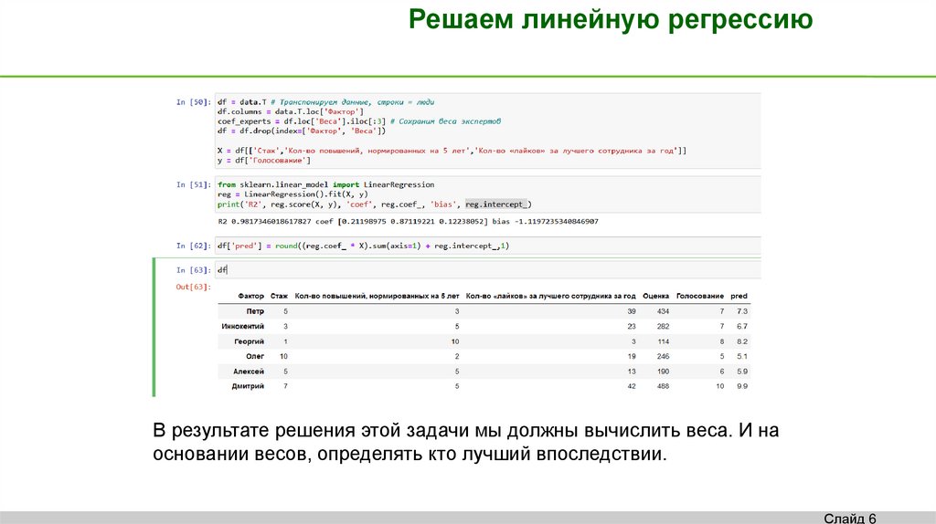 Решаем линейную регрессиюВ результате решения этой задачи мы должны вычислить веса. И на