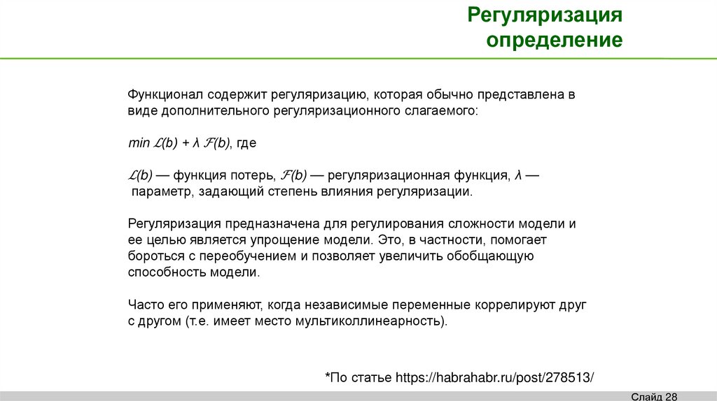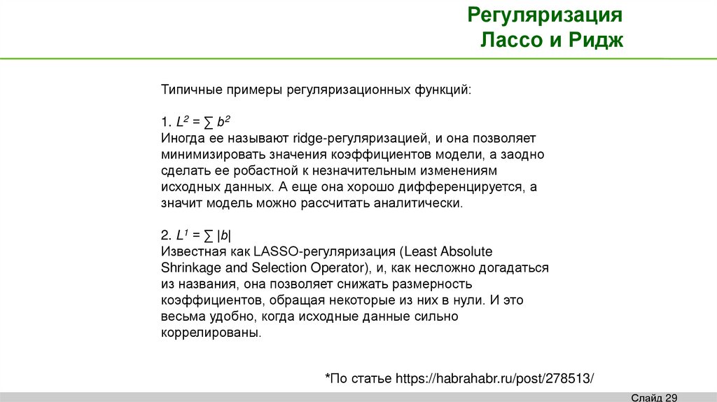Иногда ее называют ridge-регуляризацией, и она позволяет