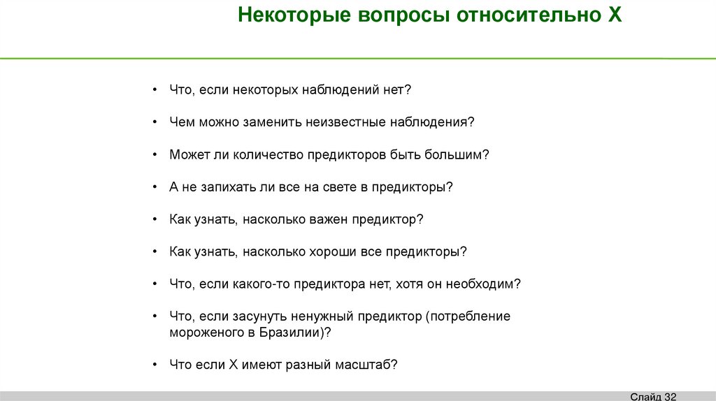 Некоторые вопросы относительно Х• Что, если некоторых наблюдений нет?