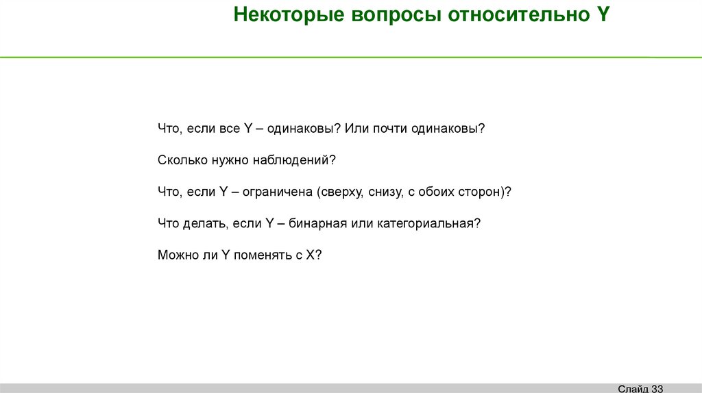 Некоторые вопросы относительно YЧто, если все Y – одинаковы? Или почти одинаковы?