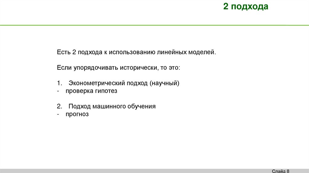 2 подходаЕсть 2 подхода к использованию линейных моделей.