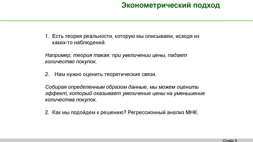 Эконометрический подход1. Есть теория реальности, которую мы описываем, исходя из
