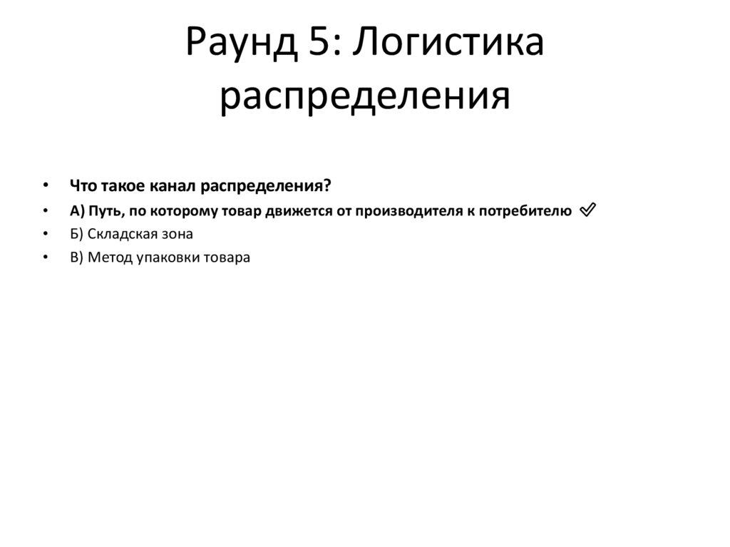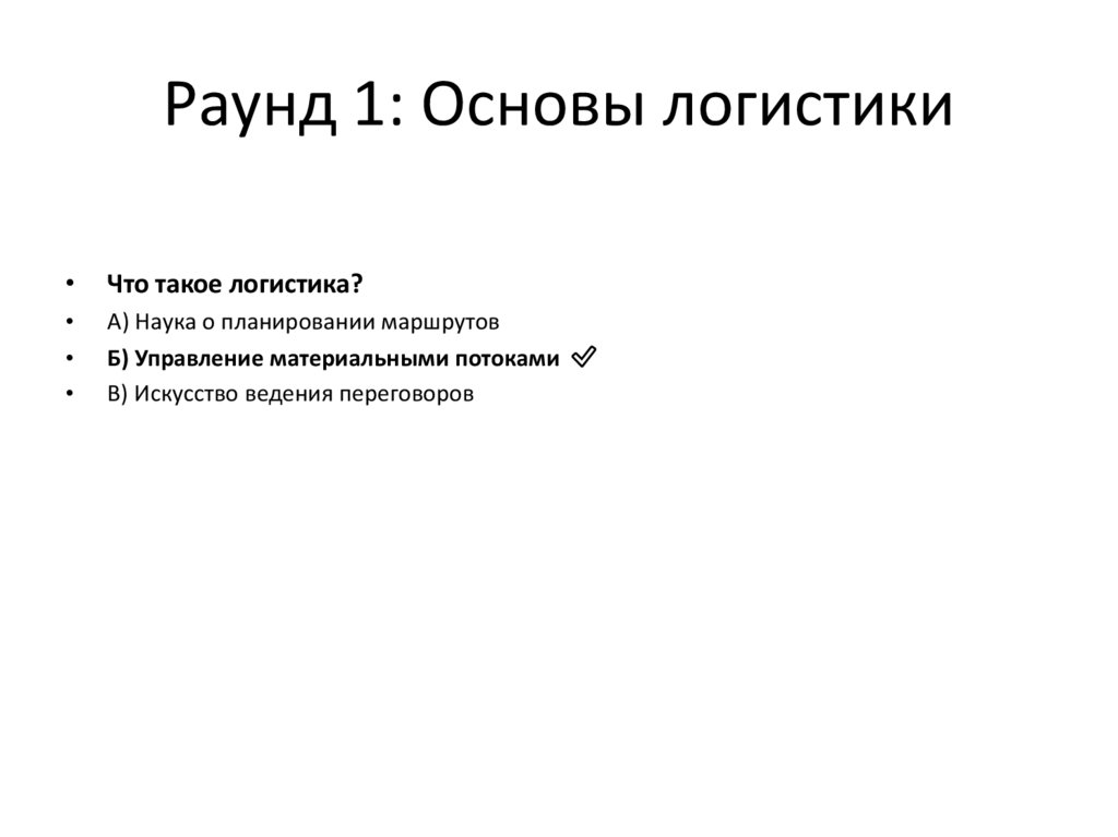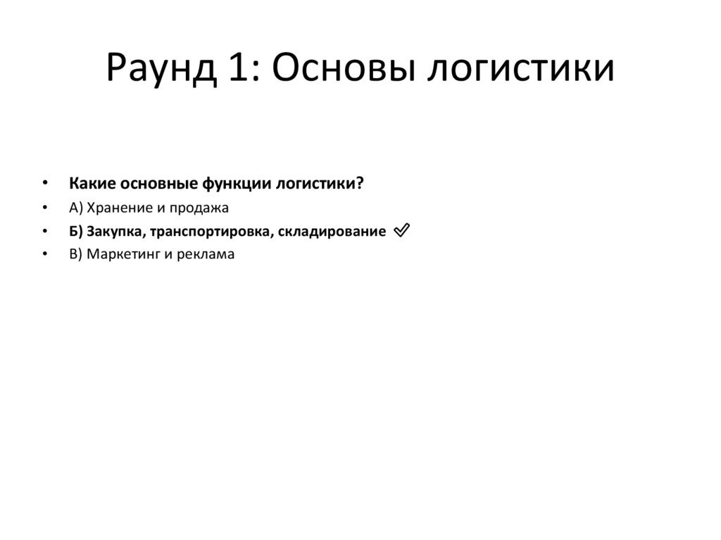 Раунд 1: Основы логистикиКакие основные функции логистики?