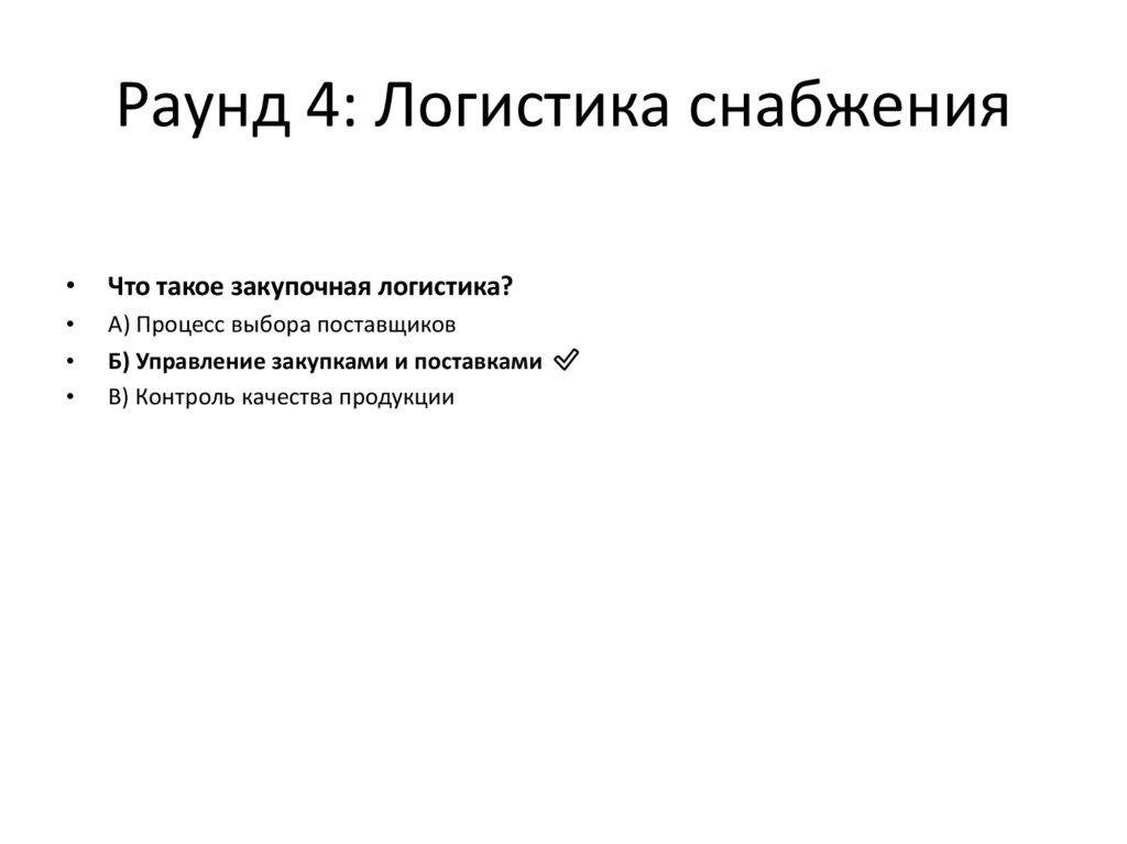 Раунд 4: Логистика снабженияЧто такое закупочная логистика?