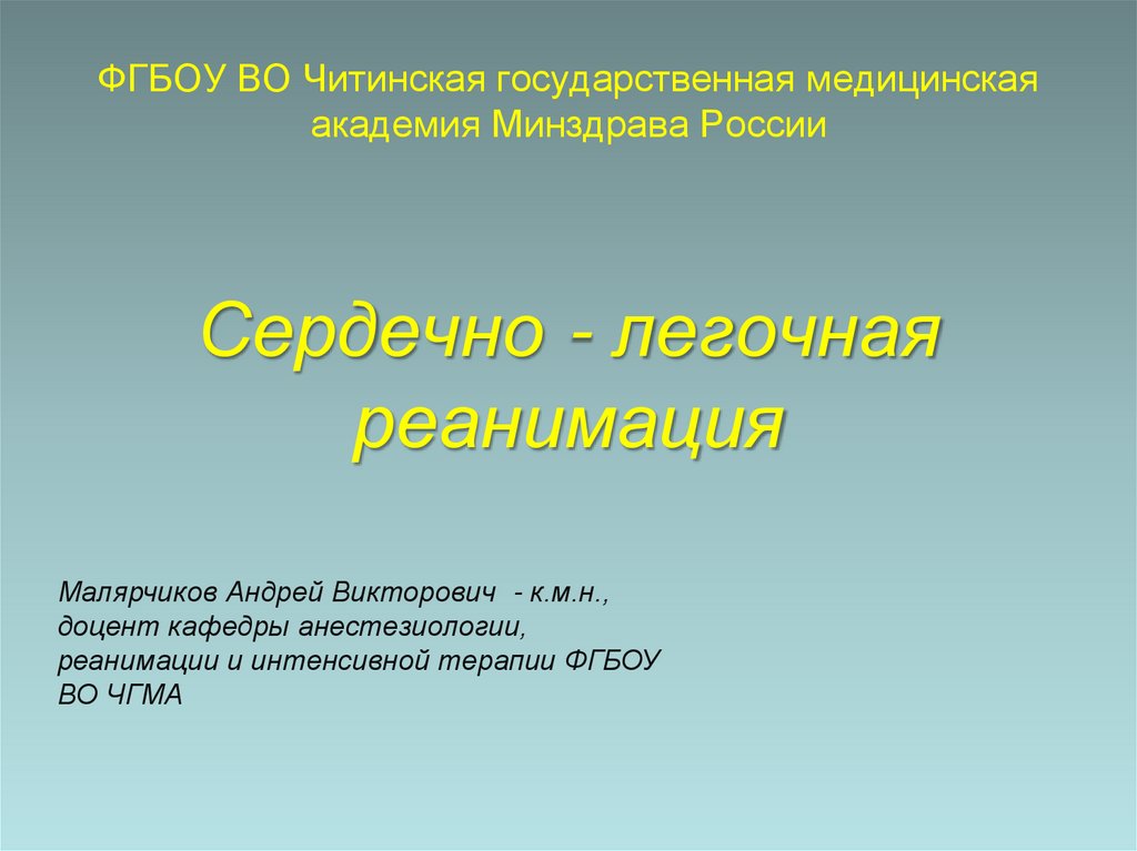 1. ФГБОУ ВО Читинская государственная медицинская академия Минздрава России Сердечно - легочная реанимация