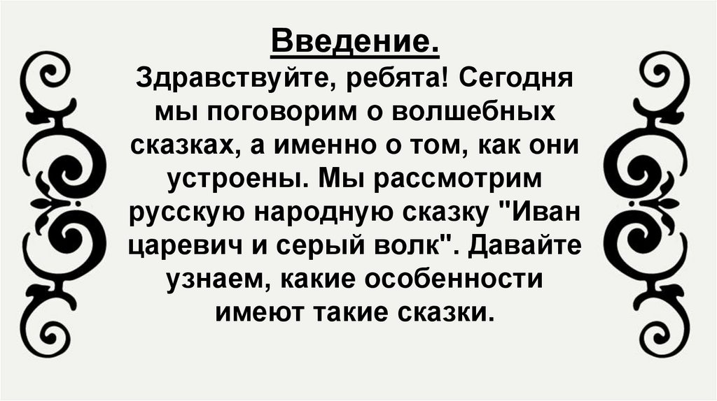 Особенности композиции волшебной сказки.На примере русской народной сказки