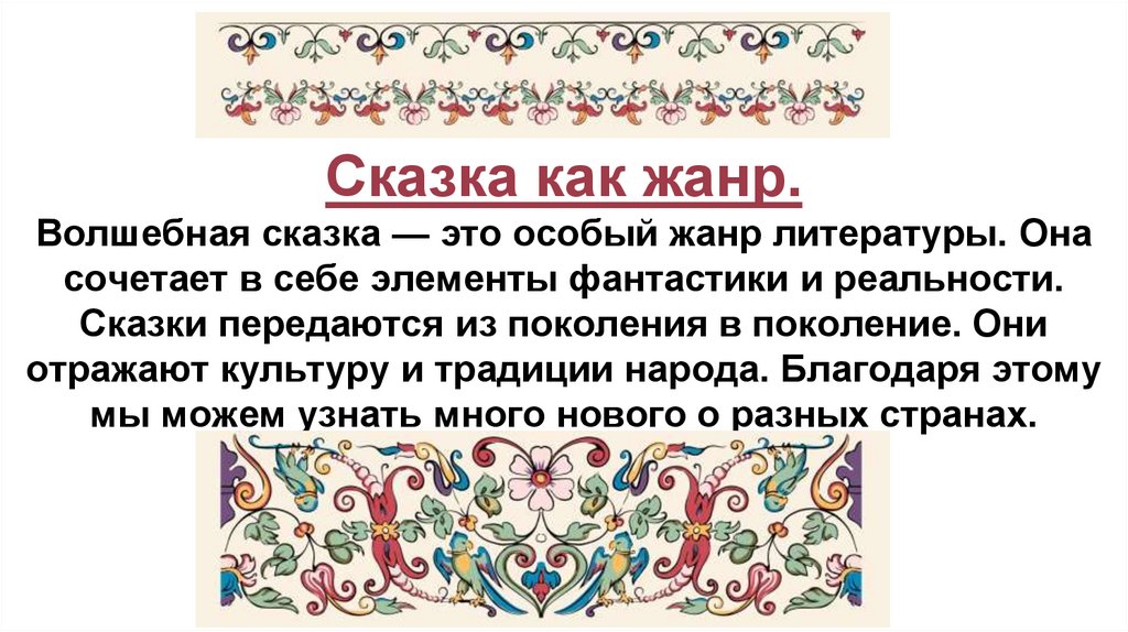 Сказка как жанр.Волшебная сказка — это особый жанр литературы. Она