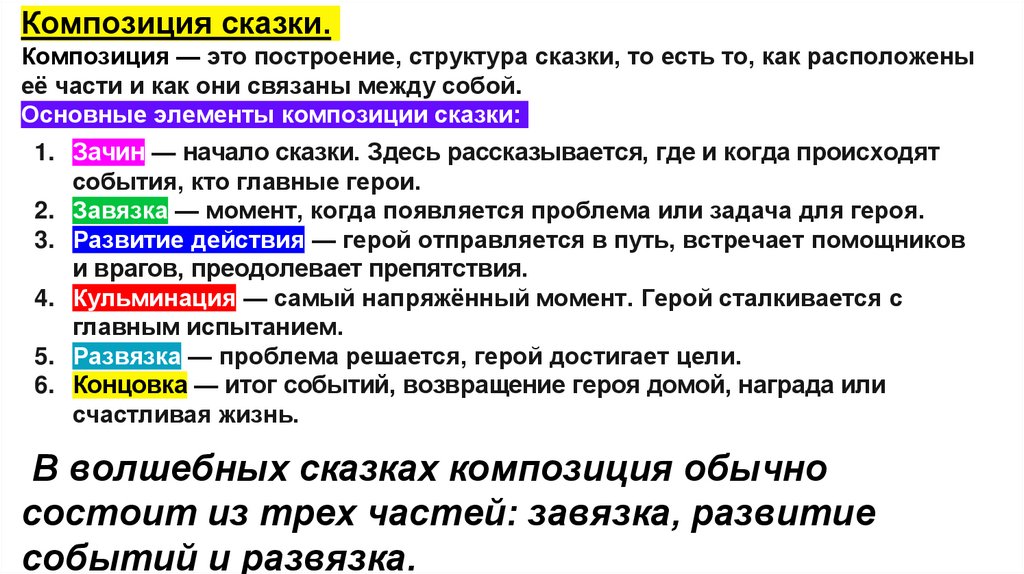 Композиция сказки.Композиция — это построение, структура сказки, то есть то, как расположены