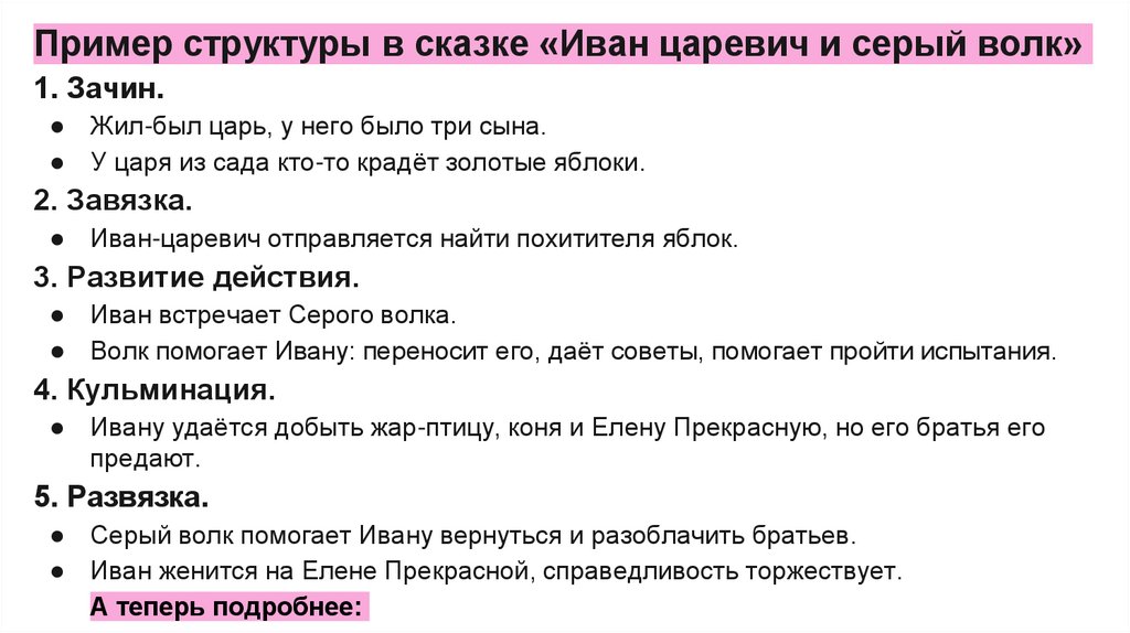 Пример структуры в сказке «Иван царевич и серый волк»1. Зачин.