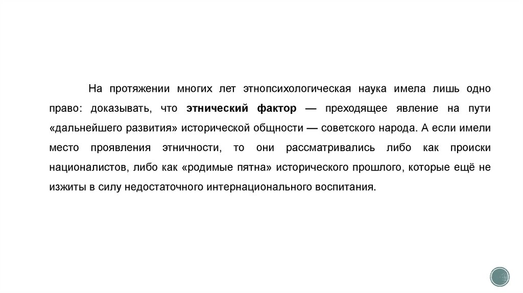 На протяжении многих лет этнопсихологическая наука имела лишь одноправо: доказывать, что этнический фактор — преходящее явление на пути