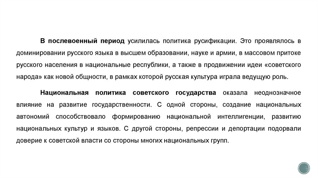национальных культур и языков. С другой стороны, репрессии и депортации подорвали