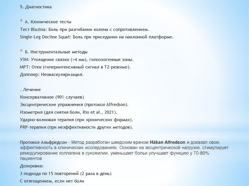 Протокол Альфредсон - Метод разработан шведским врачом Håkan Alfredson и доказал свою