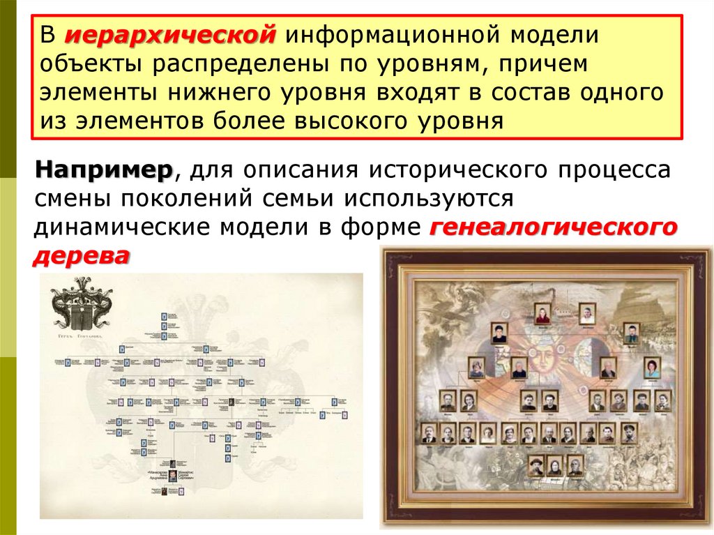 В иерархической информационной моделиобъекты распределены по уровням, причем