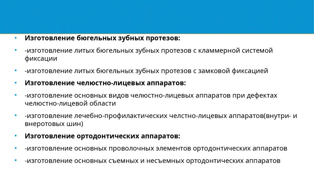 изготовление или ремонт протезов и ортодонтических аппаратов.