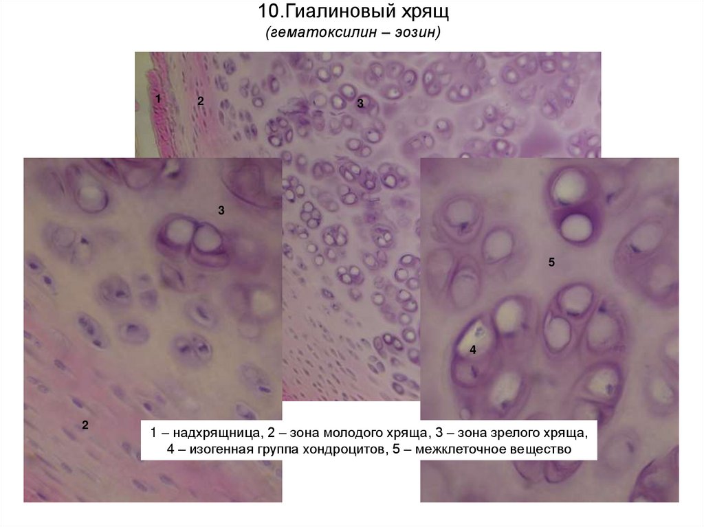 4 – изогенная группа хондроцитов, 5 – межклеточное вещество