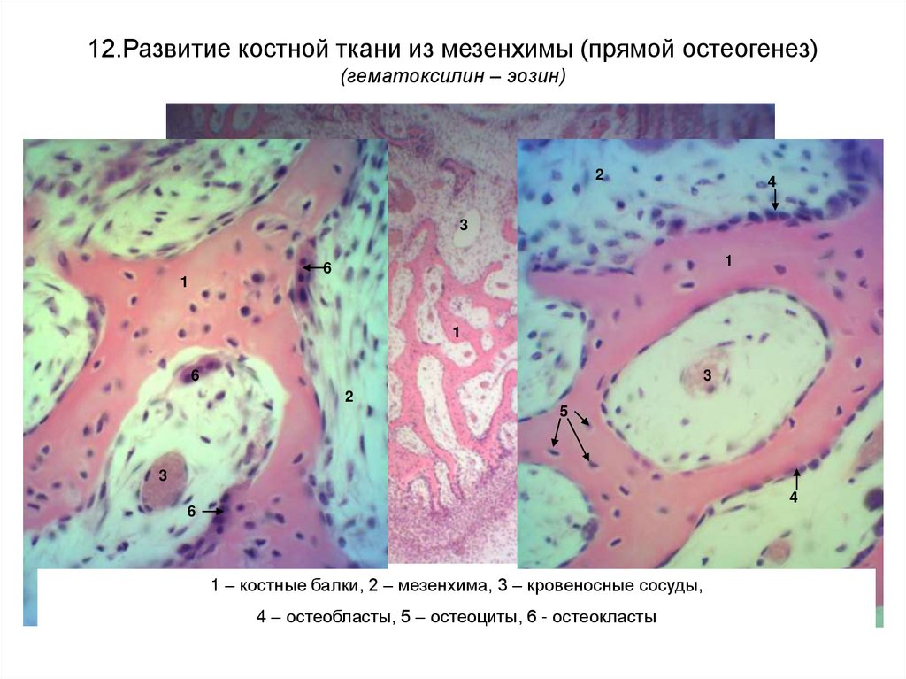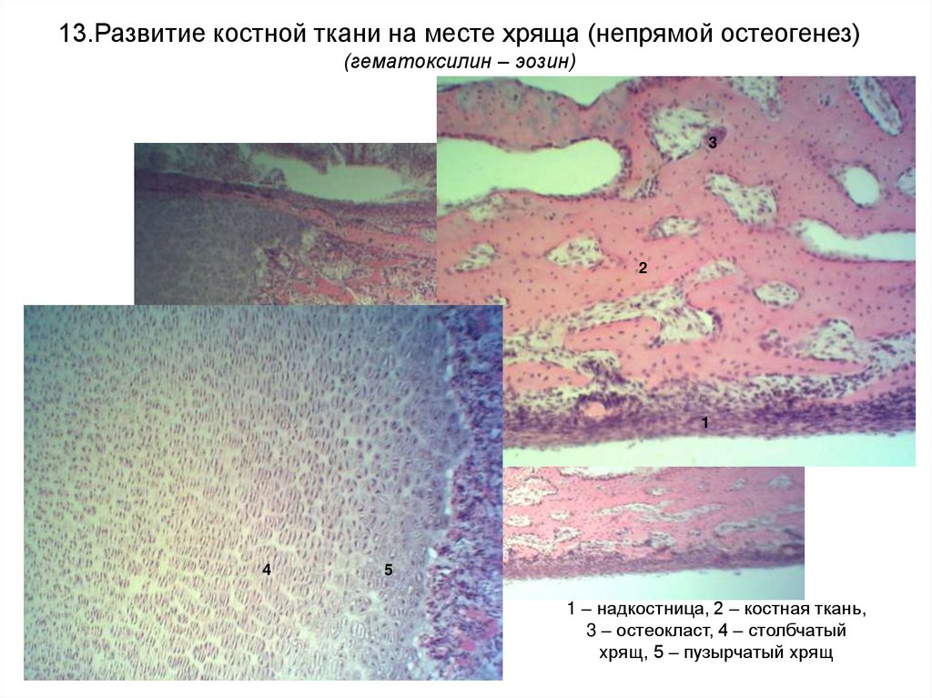 1 – надхрящница, 2 – зона молодого хряща, 3 – зона зрелого хряща,