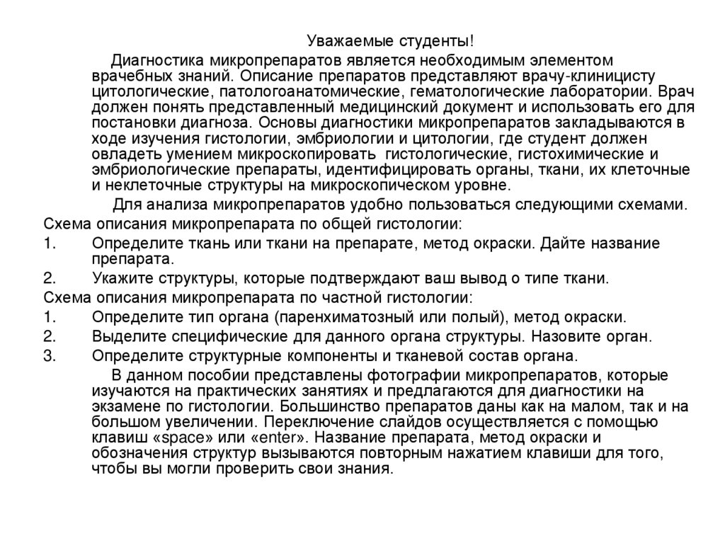 цитология (Москва, 2002), и перечнем основных микропрепаратов,