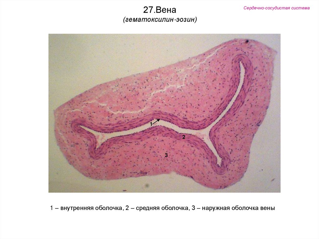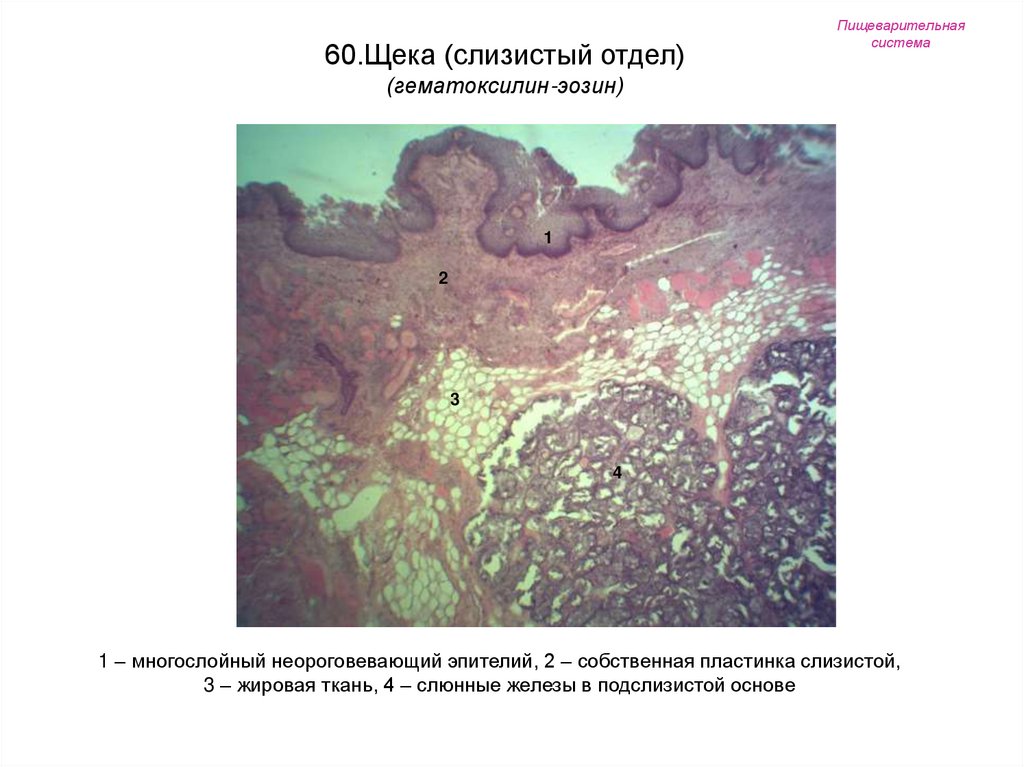 1 – базальный слой эпителия, 2 – промежуточный слой эпителия, 3 –