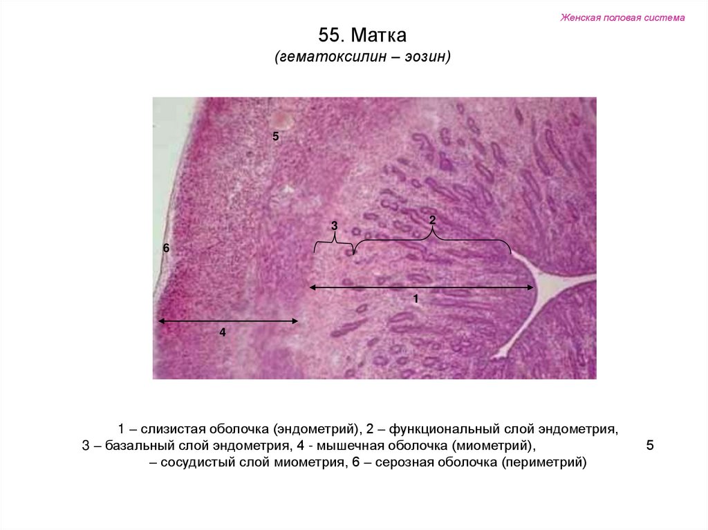 поверхностный слой эпителия, 4 – рыхлая соединительная ткань