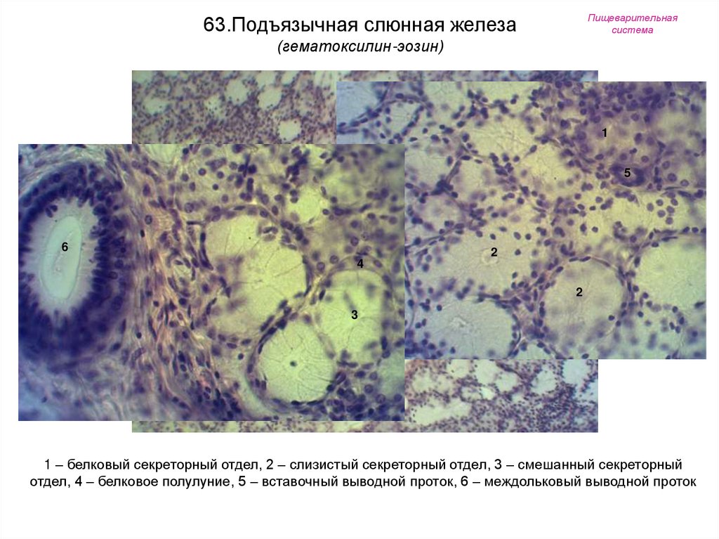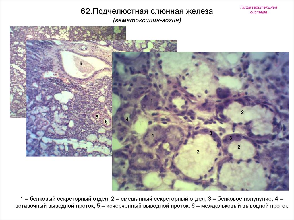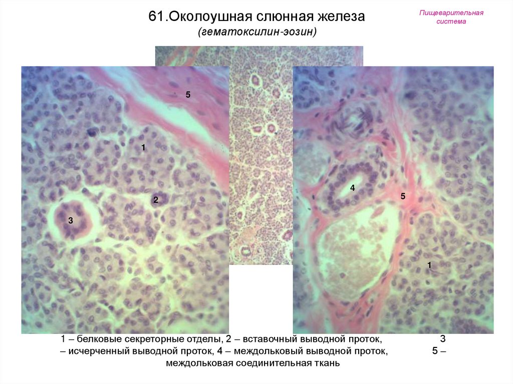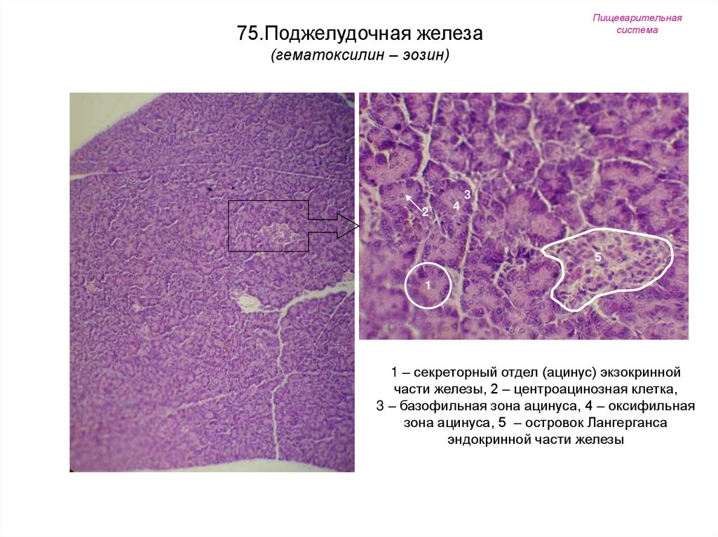 3 – базофильная зона ацинуса, 4 – оксифильная