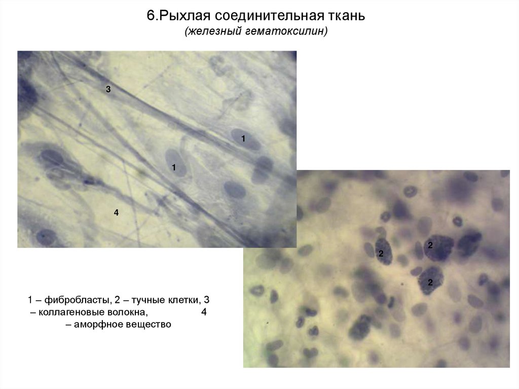 6.Рыхлая соединительная ткань(железный гематоксилин)