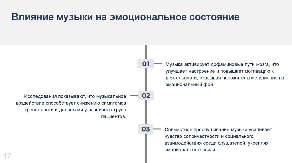 Влияние музыки на эмоциональное состояниеМузыка активирует дофаминовые пути мозга, что