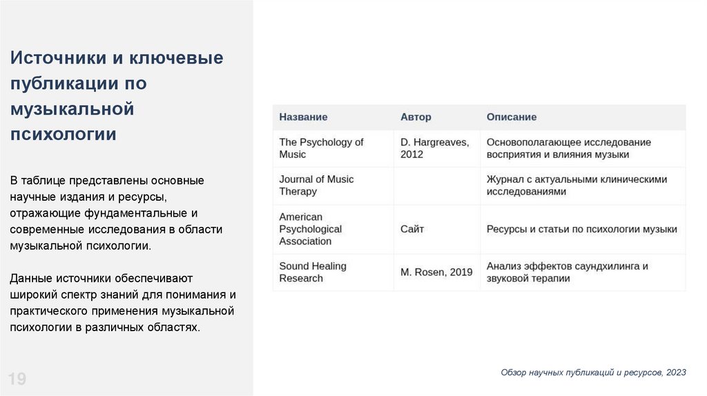 • Исследования в области музыкотерапии // Journal of Music Therapy, 2019.
