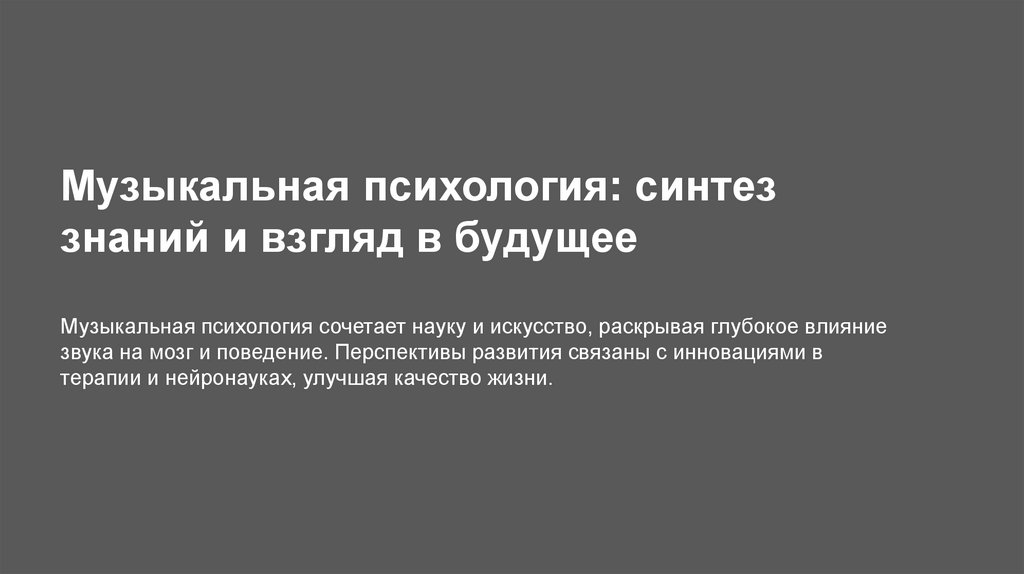 Музыкальная психология: синтеззнаний и взгляд в будущее