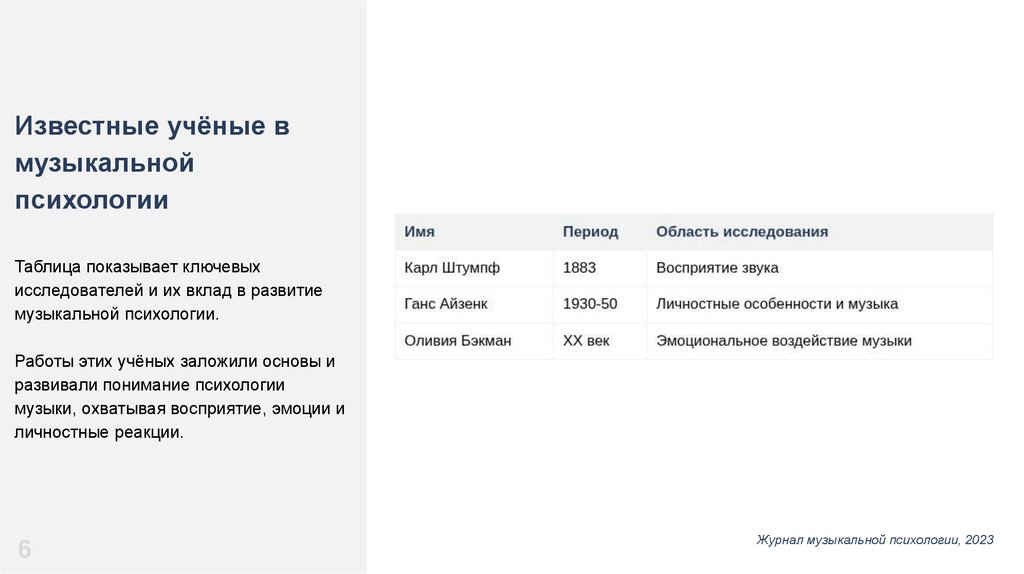 музыкальной психологии.