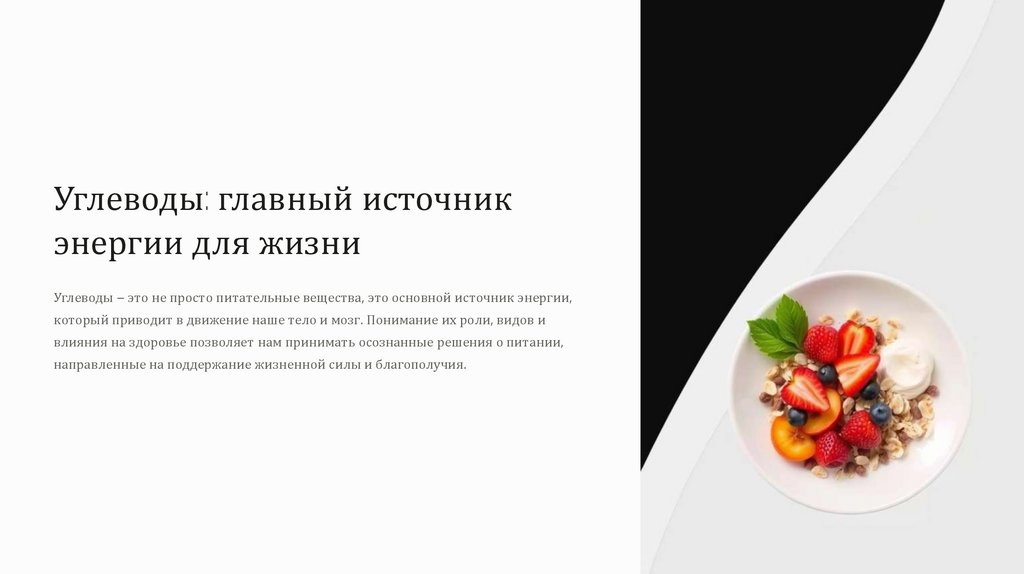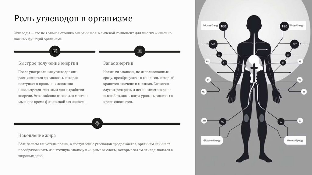 Роль углеводов в организмеУглеводы — это не только источник энергии, но и ключевой компонент для многих жизненно