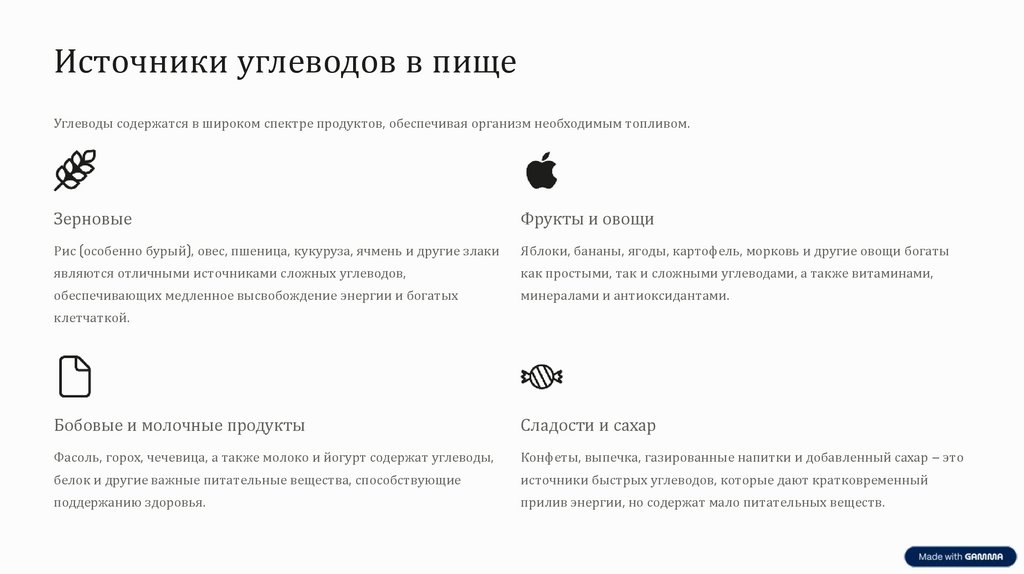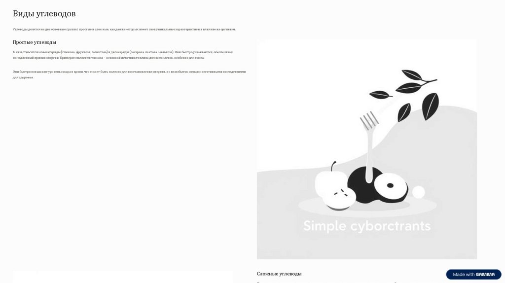 тканей и органов. Углеводы можно разделить на различные категории, включая простые сахара,