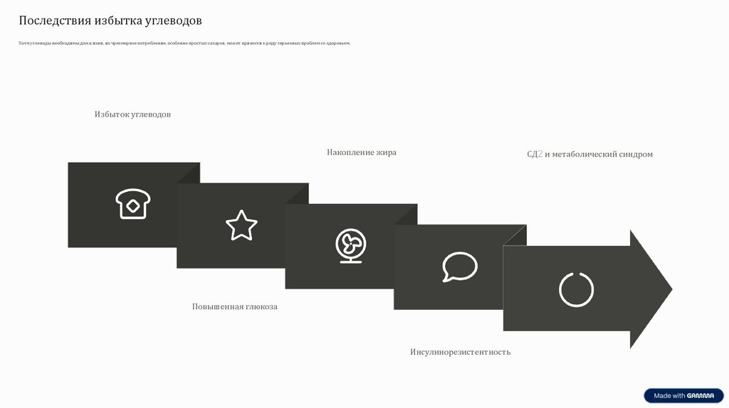 Последствия избытка углеводовХотя углеводы необходимы для жизни, их чрезмерное потребление, особенно простых сахаров, может привести к ряду серьезных проблем со здоровьем.