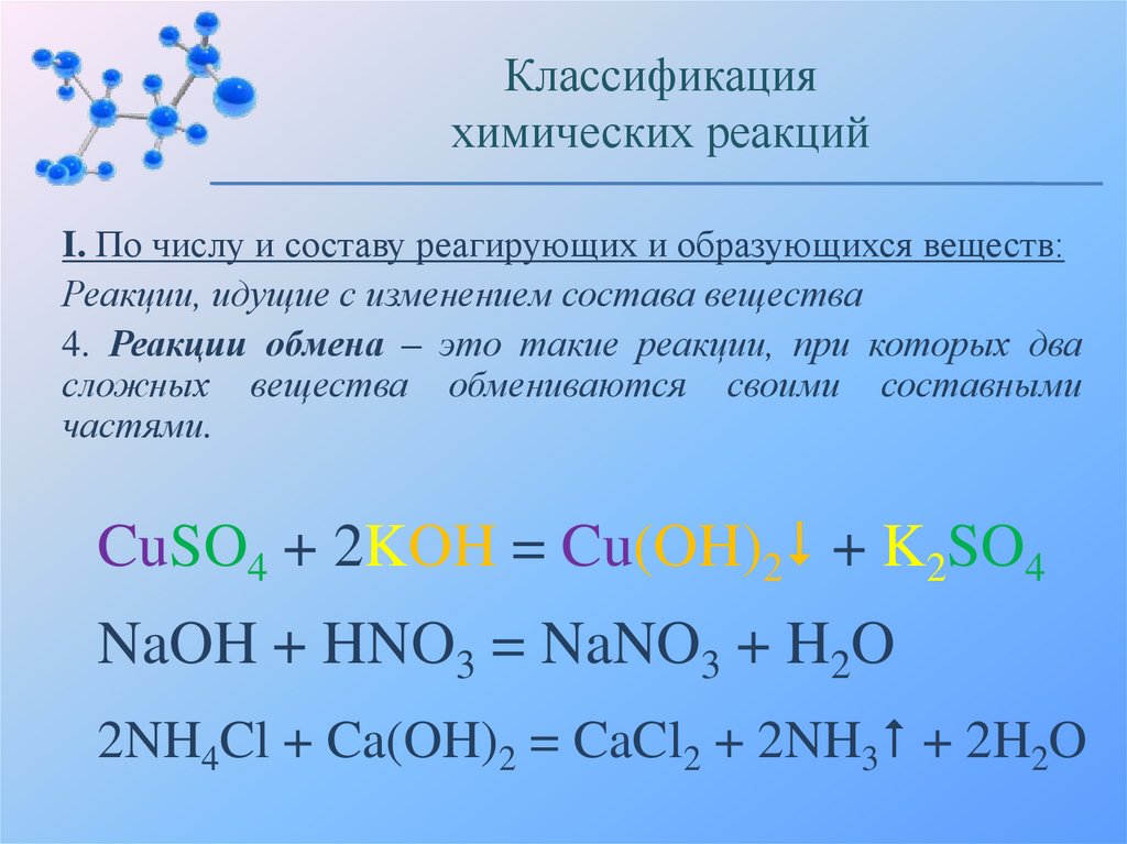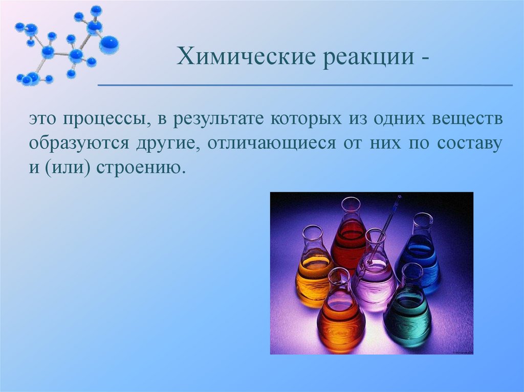 Химические реакции это процессы, в результате которых из одних веществобразуются другие, отличающиеся от них по составу