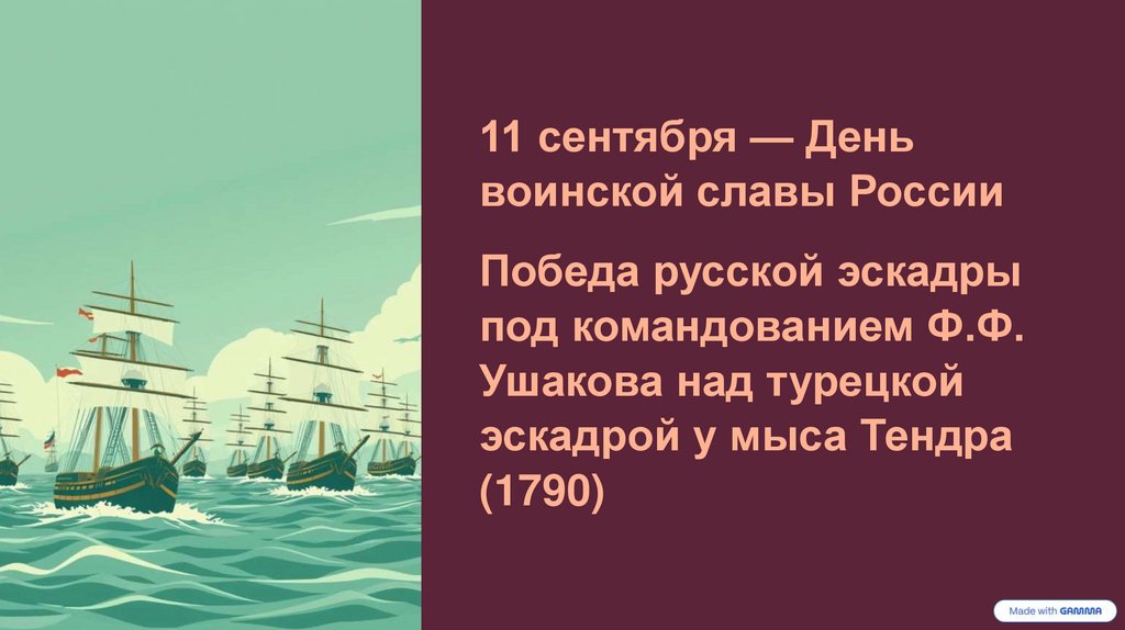 события 11 сентября отмечается как День воинской славы России, напоминая