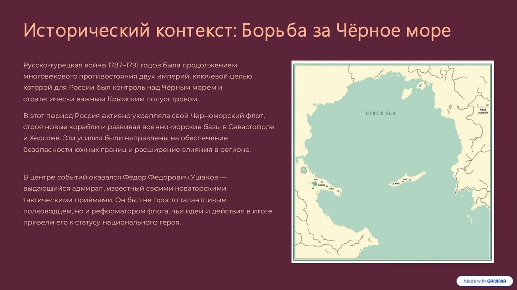 Исторический контекст: Борь ба за Чёрное мореРусско-турецкая война 1787–1791 годов была продолжением