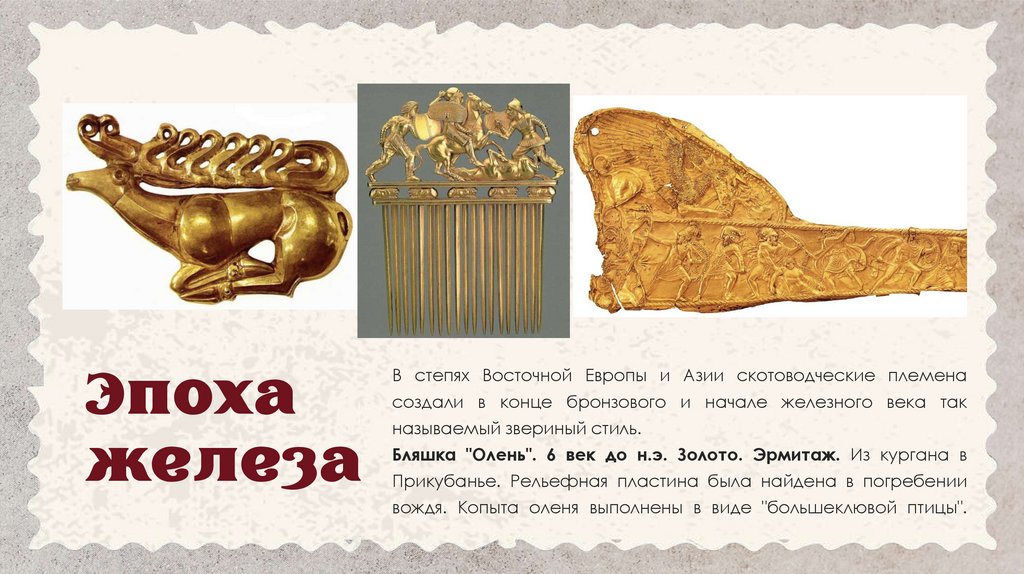 Бляшка "Олень". 6 век до н.э. Золото. Эрмитаж. Из кургана в