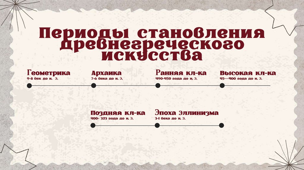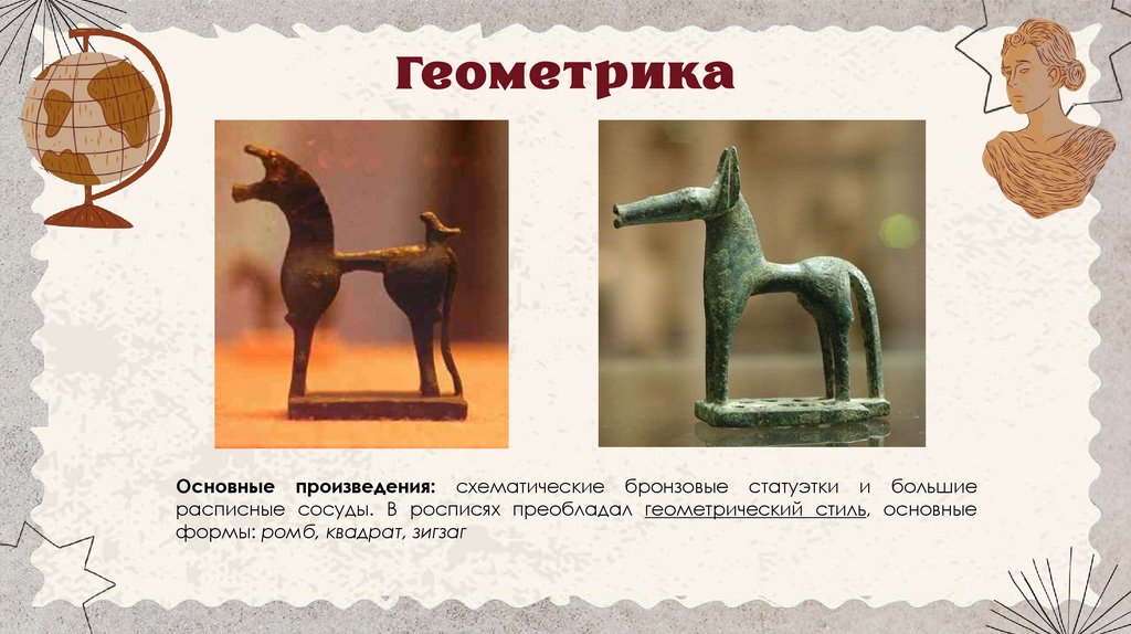 ГеометрикаОсновные произведения: схематические бронзовые статуэтки и большие
