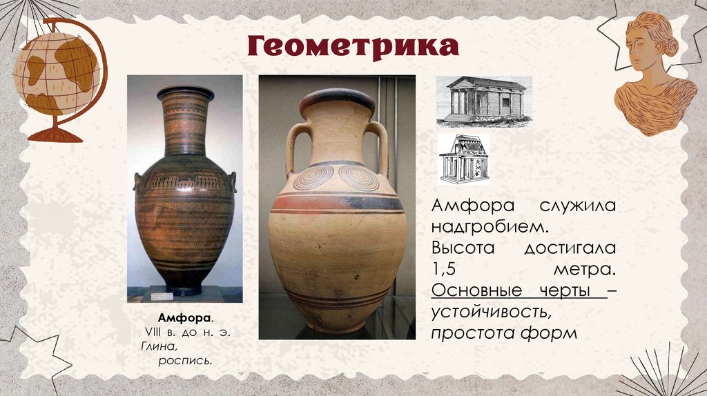 расписные сосуды. В росписях преобладал геометрический стиль, основные