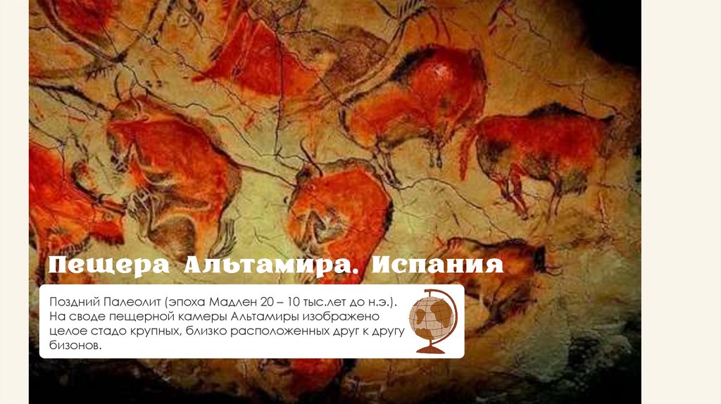Пещера Альтамира. ИспанияПоздний Палеолит (эпоха Мадлен 20 – 10 тыс.лет до н.э.).