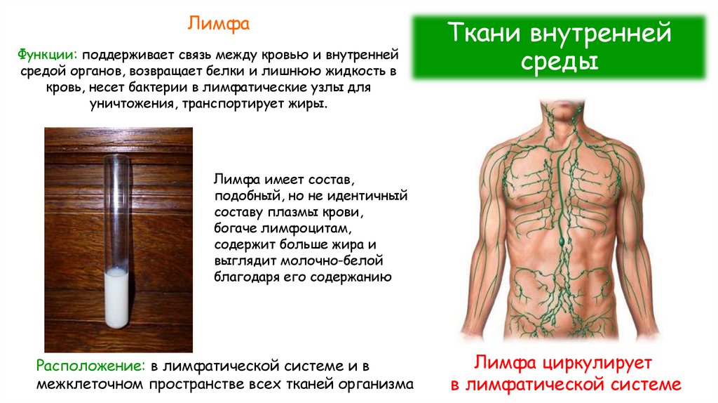 ЛимфаФункции: поддерживает связь между кровью и внутренней