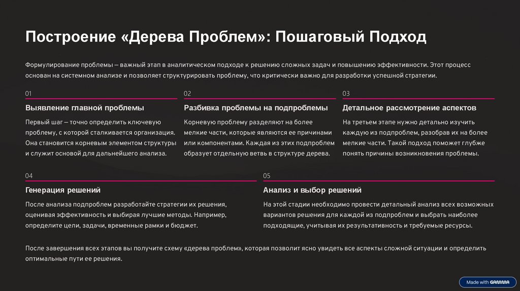 Построение «Дерева Проблем»: Пошаговый ПодходФормулирование проблемы — важный этап в аналитическом подходе к решению сложных задач и повышению эффективности. Этот процесс