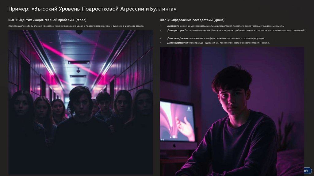 Пример: «В ы сокий Уровень Подрос тковой Агрес сии и Булл инга»Шаг 1: Идентиф икация глав ной проблемы (ств ол)