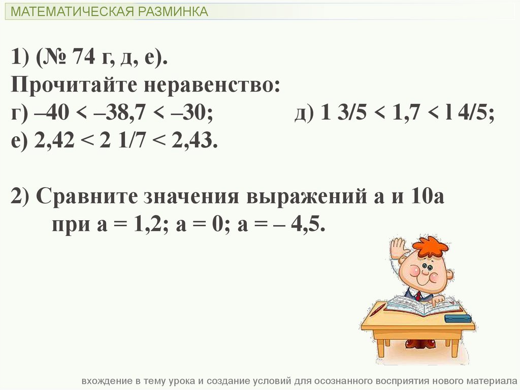 МАТЕМАТИЧЕСКАЯ РАЗМИНКА1) (№ 74 г, д, е).