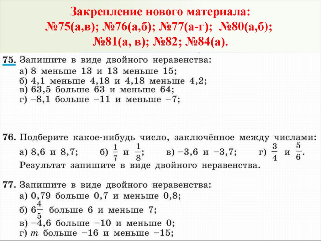 Закрепление нового материала:№75(а,в); №76(а,б); №77(а-г); №80(а,б);