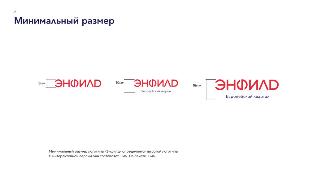 Минимальный размер логотипа «Энфилд» определяется высотой логотипа.
