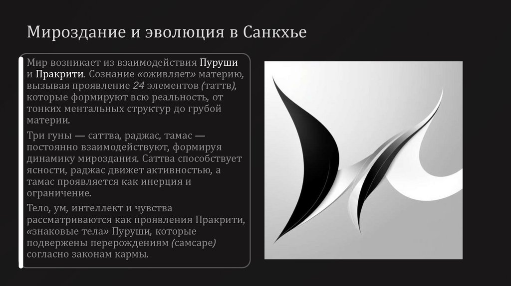 Мироздание и эволюция в СанкхьеМир возникает из взаимодействия Пуруши