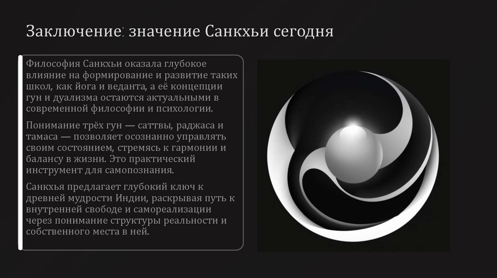 Заключение: значение Санкхьи сегодняФилософия Санкхьи оказала глубокое