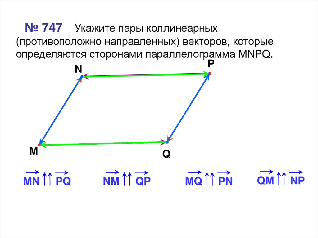 № 747 Укажите пары коллинеарных(противоположно направленных) векторов, которые